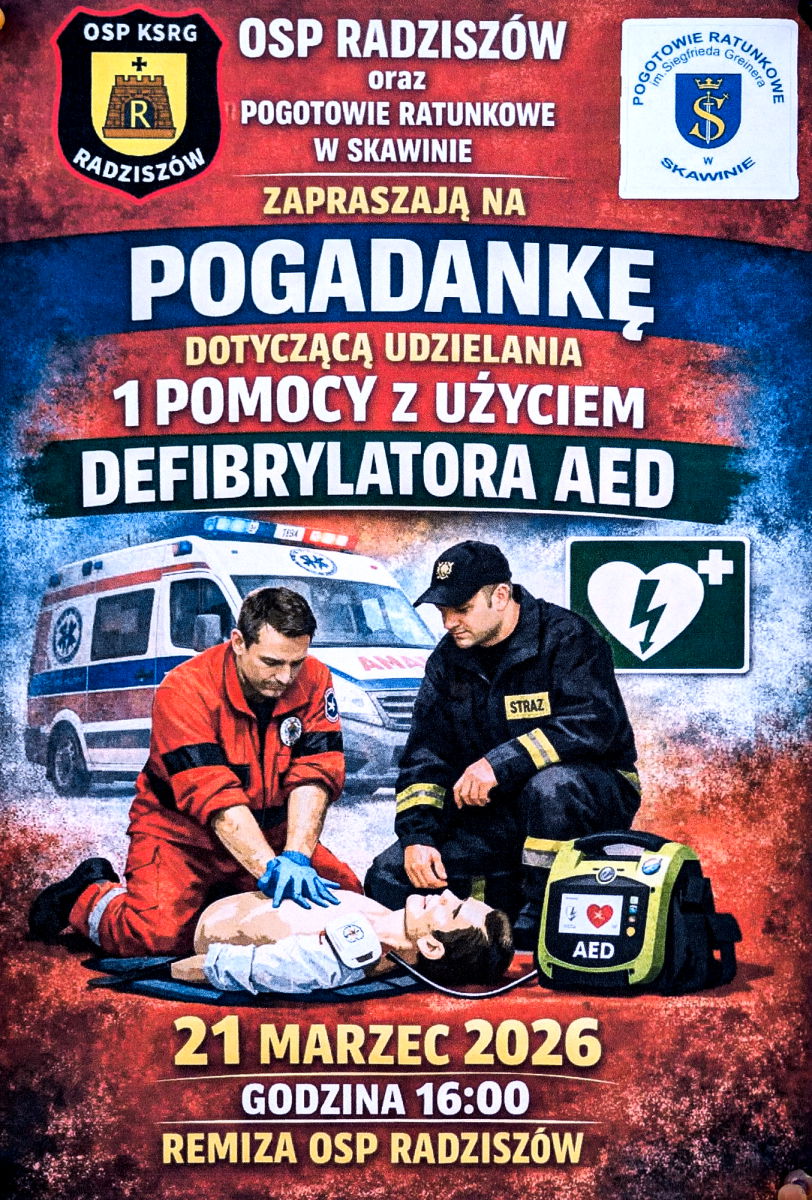 W sobotę o godzinie 16:00 Strażacy zapraszają na taką pogadankę, szkolenie z Ratownikiem medycznym, jak używać AED.