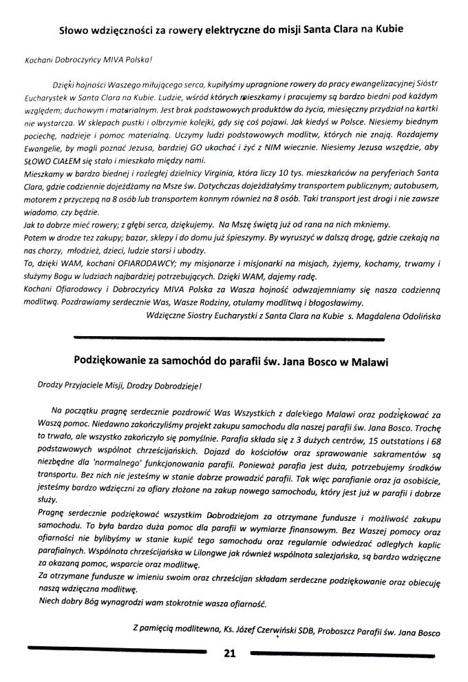 Składamy serdeczne Bóg zapłać tym Wszystkim, którzy złożyli dzisiaj ofiary na pomoc polskim Misjonarzom w zakupie środków transportu.