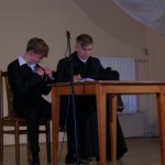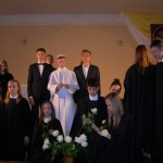 Po Mszy świętej dziękczynnej mogliśmy obejrzeć w Domu Strażaka przygotowywaną, przez uczniów Gimnazjum im. Jana Pawła II w Radziszowie i ich opiekunkę Marię Szwabowską, inscenizację „Jan Paweł II wśród nas”.