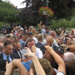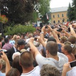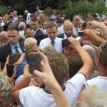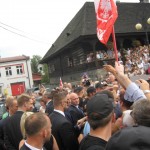 Po oficjalnych powitaniach przez tamtejsze władze i krótkim wystąpieniu Pana Prezydenta rozpoczęła się druga część bezpośrednie rozmowy, kiedy to Pan A. Duda przechodził między zgromadzonymi. Pan Prezydent z uwagą wysłuchiwał wszystkich bolączek górali ale najczęściej były życzenia aby Pan Bóg pomagał w realizacji planów i zamierzeń, słyszałam również „ trzymamy za słowo „ choćby w sprawie zmniejszenia podatków dla małych ,rodzinnych firm. Kiedy Pan Prezydent stanął koło mnie pomyślałam ma radosne, inteligentne oczy to człowiek, któremu można zaufać ,daje nadzieję, będzie pamiętał o nas tu na prowincji i naszych problemach. Prezydent wsiadł do samochodu i zaczęła się burza z obfitym deszczem.