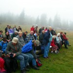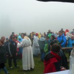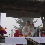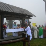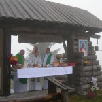 Na wspólnej modlitwie w górach spotkaliśmy się już jedenasty raz. Na szczycie przywitała nas mgła, a może raczej nisko płynące chmury. W czasie Mszy św. przez chwilę nawet padał deszcz, ale było ciepło. Atmosfera – jak zwykle – była wyjątkowa. Pięknie grała kapela góralska z Ludźmierza. Parafianie Klikuszowej i Obidowej, którzy wraz ze Spółką Leśną opiekują się w czasie roku Szałasowym Ołtarzem, wystąpili w strojach regionalnych. Przybyli też strażacy ze swoim sztandarem.